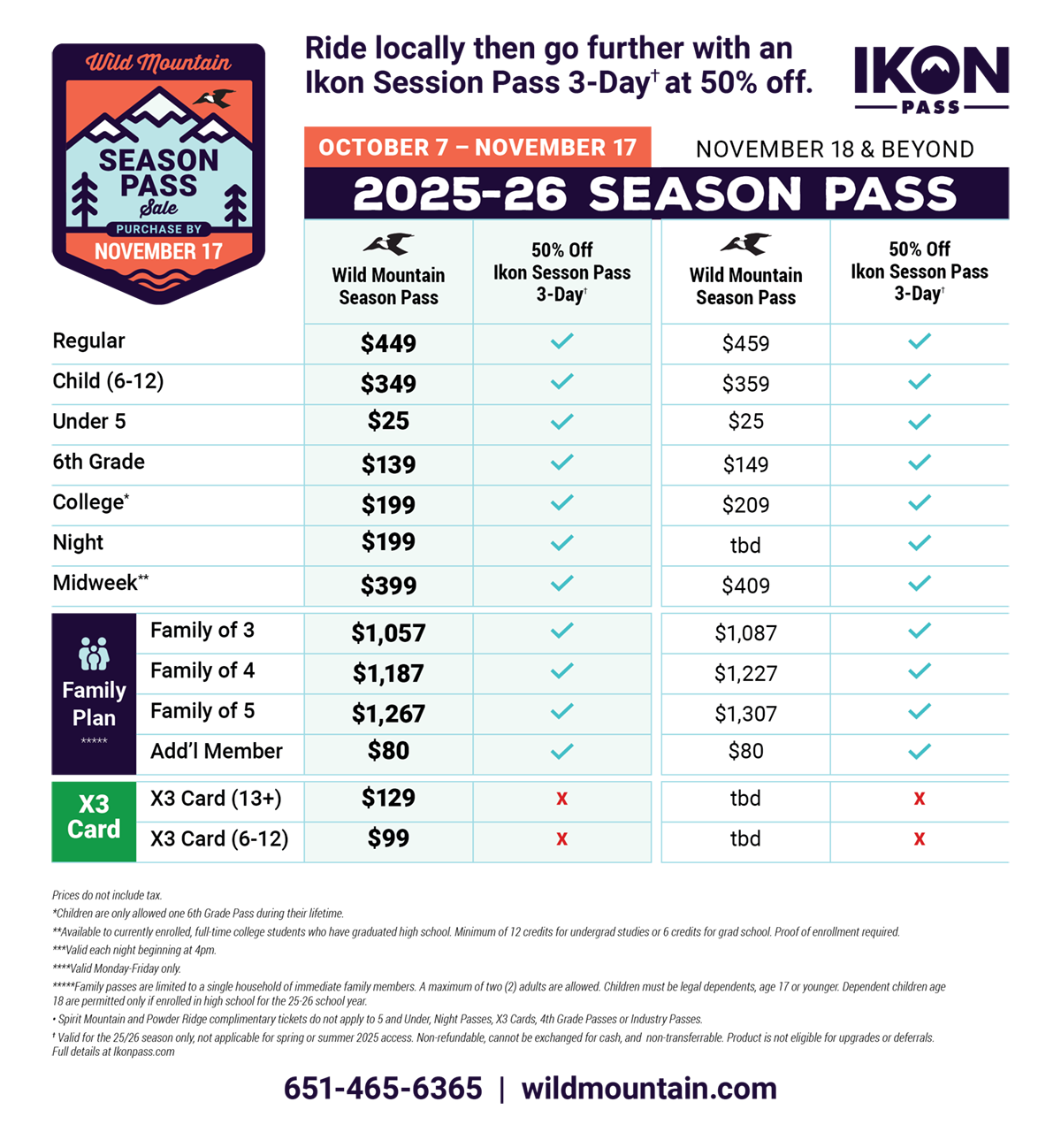 • *****Spirit Mountain and Powder Ridge offer does not apply to 5 and Under, Night Passes, X3 Cards, 4th Grade Passes or Industry Passes.